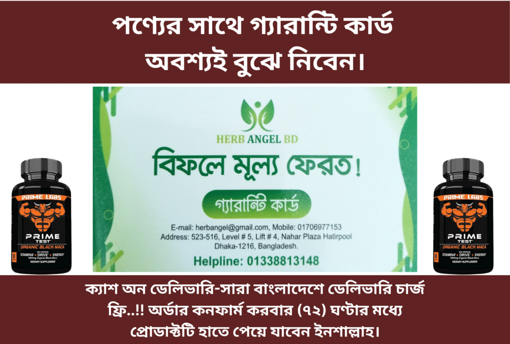আমরা আপনাকে দিচ্ছি১০০% টাকা ফেরত দেওয়ার গ্যারান্টি।"Prime Test" যদি কাজ না করে তাহলে সম্পূর্ণ টাকা ক্যাশব্যাক করা হবে।